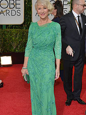 Πάντα λαμπερή, παρά την ηλικία της, η ηθοποιός Helen Mirren, φορά τουαλέτα ολοκέντητη με χάντρες, σε σμαραγδί χρώμα.