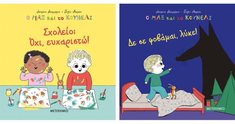 Τα παραμύθια της σειράς «Ο Μαξ και το κουνέλι» μιλούν για συνηθισμένους και καθημερινούς φόβους των παιδιών και, με όμορφες εικόνες και χιούμορ, τα ενθαρρύνουν να τους ξεπεράσουν διασκεδάζοντας. Το «Σχολείο; Όχι, ευχαριστώ!» μιλά για τα παιδιά που δεν θέλουν να πάνε στο σχολείο, προτείνοντας μια πολύ έξυπνη λύση στους γονείς που πρέπει να τα μεταπείσουν. Το «Δε σε φοβάμαι, λύκε!» αναφέρεται σε όσα τρομακτικά πλάθει η φαντασία των παιδιών στο σκοτάδι, προτείνοντας έναν διασκεδαστικό τρόπο να τα ξορκίσουν χωρίς να ανάψουν το φως.