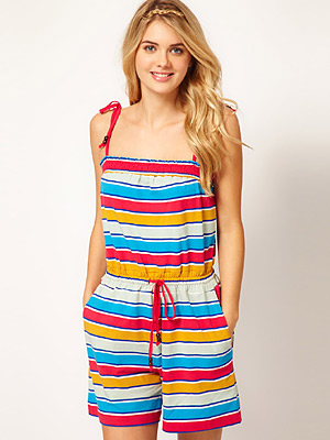 Ριγέ πολύχρωμη φόρμα παραλίας, με τιράντες που προσαρμόζονται και ζωνάκι στη μέση, από 100% cotton.