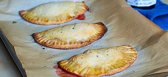 Το σνακ αυτό μπορεί να γίνει πολύ εύκολα, ακόμα και από τα ίδια τα παιδιά, αν τους προσφέρετε έτοιμη ζύμη, την οποία θα ανοίξουν με τα χεράκια τους. Κόψτε την σε μικρούς κύκλους, ζητήστε από τα παιδιά να βάλουν μία μεγάλη κουταλιά μαρμελάδας στο κέντρο, διπλώστε τους κύκλους και πιέστε όλοι μαζί με τα δαχτυλάκια για να ενωθούν οι άκρες.