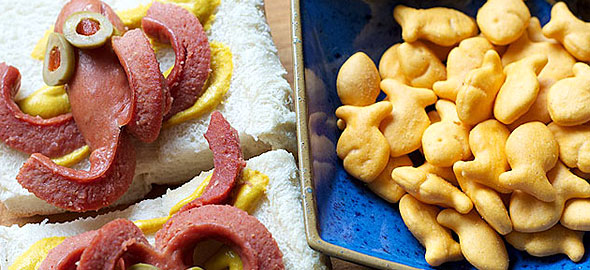 Τοποθετήστε το... καλαμάρι πάνω σε μία φέτα ψωμιού με μουστάρδα ή κέτσαπ και συνοδεύστε, προαιρετικά, με κρακεράκια σε σχήμα ψαριού. Τα παιδιά θα ξετρελαθούν!
