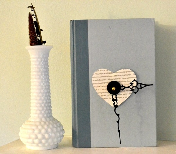 Κόψτε μια σελίδα στο σχήμα καρδιάς και τοποθετήστε το στο εξώφυλλο του βιβλίου, με το κέντρο της να βρίσκεται στο σημείο που θα μπουν οι δείκτες. Τοποθετήστε τους δείκτες και τις μπαταρίες.