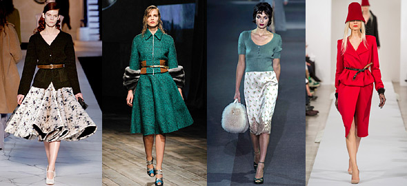 Κι αν αναζητάτε μια θηλυκή νότα στις φετινές φθινοπωρινές τάσεις της μόδας, δεν θα την βρείτε παρά σε λίγες αλλά καλές αναφορές σε κινηματογραφικά (και δε film-noir) look από τα παλιά και τα παλιότερα. Περισσότερη εντύπωση δημιούργησαν τα μεσάτα σακάκια, με ζωνάκι και οι τεράστιες φούστες που τονίζουν τη γυναικεία μέση και παραπέμπουν σε άλλες εποχές. Μπορεί οι συγκεκριμένες φούστες να είναι κάπως εκκεντρικές και να φοριούνται μόνο σε ιδιαίτερες περιστάσεις, αλλά ο τονισμός της μέσης με ζωνάκια σε πανωφόρια μας αρέσει πολύ.