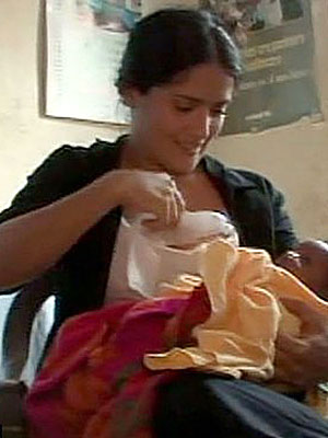Σε φιλανθρωπικό ταξίδι της στη Sierra Leone η Salma Hayek φωτογραφήθηκε να θηλάζει το μωρό μιας μητέρας, η οποία δεν τρεφόταν επαρκώς ώστε να μπορεί να παράγει γάλα.