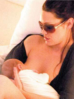 Σε τεύχος του περιοδικού W, το 2008, η Angelina Jolie φωτογραφήθηκε από τον σύζυγό της, στο σπίτι τους, σε τρυφερές στιγμές με το μωρό της. Ωστόσο, η ίδια έχει ουκ ολίγες φορές ειδωθεί να θηλάζει δημόσια.