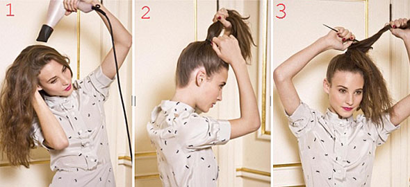 Θα χρειαστεί απλά να χωρίσετε τα μαλλιά σας οριζοντίως σε μέρη και να στερεώσετε τα κοτσάκια σας στο πίσω μέρος του κεφαλιού με τσιμπιδάκια, όπως στις φωτογραφίες.
