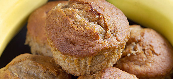 Σε ένα μπολ ανακατεύετε τα «στερεά» υλικά, δηλαδή το αλεύρι, το μπέικιν πάουντερ, την κανέλα και το αλάτι. Χτυπάτε στο μίξερ με το σύρμα, σε υψηλή ταχύτητα, τη μπανάνα και τη ζάχαρη για 2-3 λεπτά. Προσθέτετε το βούτυρο και τα αυγά και ανακατεύετε μέχρι να ομογενοποιηθεί το μίγμα.