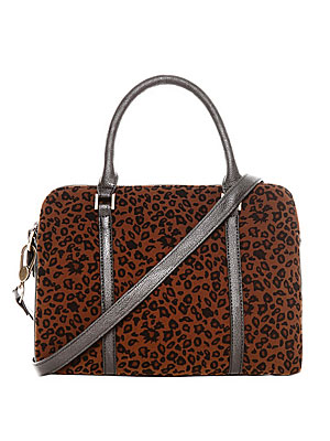 Μεγάλη τσάντα ώμου/χειρός Pull & Bear από δερματίνη και ύφασμα, με λεοπάρ σχέδιο, για τις καθημερινές σας εμφανίσεις.