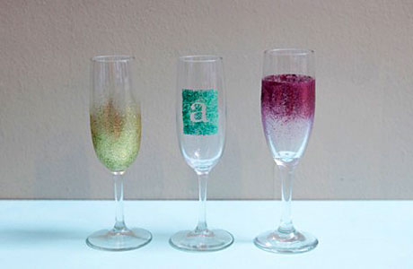 Θέλετε να εντυπωσιάσετε στο επόμενο πάρτυ σας; Βάλτε γκλίτερ στα παλιά ποτήρια του κρασιού ή της σαμπάνιας. Πώς θα το κάνετε; Θα χρησιμοποιήσετε χρώμα σιλικόνης και της ίδιας απόχρωσης γκλίτερ σε σκόνη. Θα αναμείξετε καλά τα δύο υλικά σε ένα μπολάκι και με ένα μικρό σφουγγαράκι θα αρχίσετε να περνάτε στρώσεις από το χρώμα με το γκλίτερ στο ποτήρι, στο σχέδιο που θέλετε. Μπορείτε ακόμα πάνω στο κάθε ποτήρι με γκλίτερ να κολλήσετε και ένα αυτοκόλλητο γράμμα, για να μη μπερδεύουν οι καλεσμένοι σας τα ποτήρια τους!