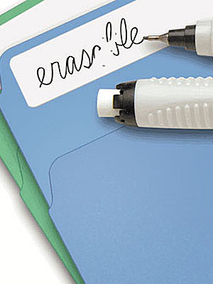 Το πρόβλημα είναι γνωστό: Τα παιδιά έχουν ντοσιέ, κλασέρ, ζελατίνες, τα οποία δεν χρειάζεται να ανανεώνουν κάθε χρόνο. Καταλήγουν, λοιπόν, όλα τους με ετικέτες που αναγράφουν άλλα αντί άλλων ως προς την τάξη του παιδιού ή και το μάθημα. Αυτό το kit σας τη δυνατότητα να κολλάτε στους φακέλους ετικέτες, στις οποίες ό,τι κι αν γράψετε σβήνει και ξαναγράφεται.