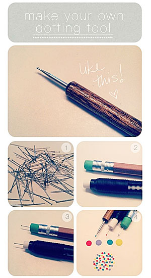 Για να κάνετε σχέδιο με βουλίτσες πάνω στο μανό σας, τοποθετήστε μία καρφίτσα με πλατύ κεφάλι στην γόμα ενός μολυβιού και βουτήξτε την στο χρώμα που θέλετε.