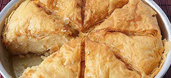 Ωστόσο, φτιάχνετε το σιρόπι, βράζοντας το νερό με τη ζάχαρη για 15 λεπτά. Μόλις βγάλετε το γλυκό από τον φούρνο, το περιχύνετε όπως είναι ζεστό. Όταν κρυώσει το κόβετε σε ό,τι σχήμα θέλετε. Τρώγεται καλύτερα κρύο.