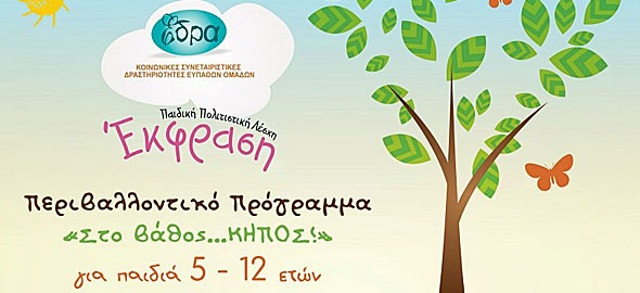 H Μ.Κ.Ο. «ΕΔΡΑ», μέσω της Παιδικής Πολιτιστικής Λέσχης «ΕΚΦΡΑΣΗ» υλοποιεί το Περιβαλλοντικό Πρόγραμμα «Στο βάθος... ΚΗΠΟΣ!» για παιδιά ηλικίας 5-12 ετών. Το πρόγραμμα περιλαμβάνει ενεργή ενασχόληση των παιδιών με τη φύση, τη γη, τα λουλούδια, την καλλιέργεια λαχανικών και αρωματικών φυτών, αλλά και τη βιολογική καλλιέργεια. Σκοπός είναι τα παιδιά να γνωρίσουν αλλά και να μάθουν να σέβονται το περιβάλλον στο οποίο ζουν.