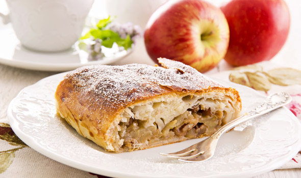 Για να φτιάξετε τη γέμιση, κόβετε τα μήλα σε κύβους και τα ρίχνετε σε μια κατσαρόλα μαζί με τη ζάχαρη και την κανέλα. Τα αφήνετε να βράσουν για 7-8 λεπτά και στη συνέχεια τα βγάζετε από τη φωτιά. Τα αφήνετε να κρυώσουν και στη συνέχεια πασπαλίζετε με τα καρύδια.