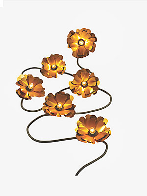 Όμορφη διακοσμητική, μεταλλική γιρλάντα με φθινοπωρινά άνθη, σε χρυσοπράσινο χρώμα, που θα δημιουργήσει ζεστασιά στο σπίτι.