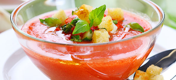 Η κρύα σούπα γκασπάτσο είναι στην πραγματικότητα ένα μείγμα φρέσκιας ντομάτας και λαχανικών, μεταξύ των οποίων κρεμμύδι και σκόρδο που έχουν αντιϊκές ιδιότητες (επιτίθενται στους ιούς). Τα λαχανικά αυτά, μάλιστα, βοηθούν τον οργανισμό να απορροφά καλύτερα τις βιταμίνες που ενισχύουν το ανοσοποιητικό σύστημα.
