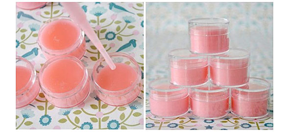 Βάλτε την κηρήθρα και το ηλιέλαιο σε γυάλινο σκεύος, στον φούρνο μικροκυμάτων και ζεστάνετε σε μέτρια ένταση μέχρι να λιώσει η κηρήθρα. Ανακατέψτε με ένα κουτάλι και προσθέστε μερικές σταγόνες αιθέριο έλαιο φράουλας. Στη συνέχεια προσθέστε αν θέλετε λίγο χρώμα από υπολείμματα παλιών κραγιόν, μέχρι να πετύχετε το χρώμα που θέλετε, και ανακατέψτε καλά το μείγμα. Μεταφέρετε σε βαζάκια και περιμένετε να κρυώσει!