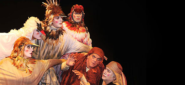 Τέσσερις κωμωδίες του Αριστοφάνη (Ειρήνη, Αχαρνείς, Πλούτος και Όρνιθες) σε διασκευή Δημήτρη Ποταμίτη και σκηνοθεσία Νίκου Δάφνη παίρνουν ζωή από 27 Οκτωβρίου στο θέατρο Κάτω από τη Γέφυρα. Με ευφάνταστα σκηνικά, δεκάδες κοστούμια και αξιοποιώντας -με μέτρο- τη μαγεία των πολυμέσων, τα παιδιά καλούνται να ταξιδέψουν σε κόσμους που η ειρήνη, η ελευθερία η δικαιοσύνη, η παιδεία και η δημοκρατία είναι κατακτήσεις και όχι ...ευχές! Η μουσική και τα τραγούδια της παράστασης είναι του Γιάννη Ζουγανέλη.