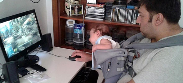 Ο μπαμπάς που συστήνει στο μωρό του τα χόμπι του