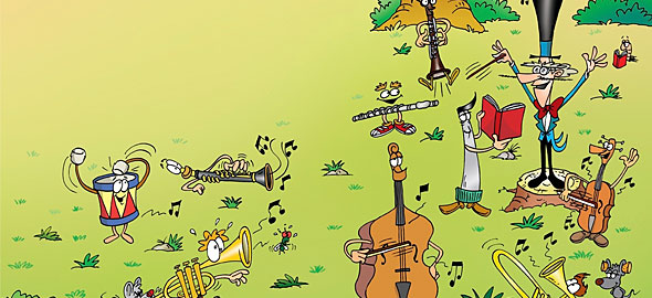 Η μουσική παράσταση της ομάδας «Ανοιχτή Ομπρέλα», βασισμένη στο ομώνυμο βιβλίο του Γιώργου Κωνσταντινίδη, εισάγει τα παιδιά στο μαγικό κόσμο της μουσικής, της ορχήστρας και των μουσικών οργάνων. Στη διάρκειά της τα παιδιά γνωρίζουν τα μουσικά όργανα και την ορχήστρα και ανακαλύπτουν τη γοητεία της μουσικής, συμμετέχοντας στην εξέλιξη της δράσης, με τη βοήθεια δύο μουσικών και τριών ηθοποιών.