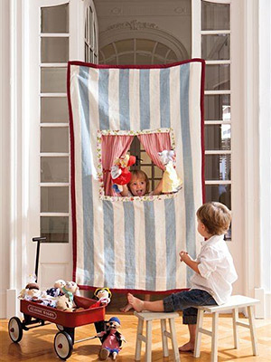 Όλοι έχουμε χαλάσει ένα σεντόνι στο πλυντήριο αλλάζοντάς του χρώμα. Με ένα τέτοιο, μεγάλο πανί, μπορούμε να φτιάξουμε ένα κιόσκι, όπου θα παίξουν τα ζουζούνια μας κρυφτό, ψιλικατζίδικο, καφενείο ή ό,τι αλλό σκαρφιστούν, εάν κρεμαστεί αναμεσα σε δύο κάσες πόρτας.
