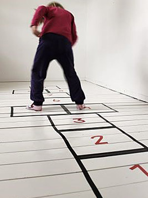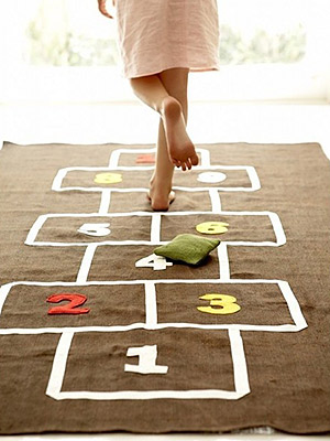 Φτιάξτε με χαρτοταινία στο πάτωμα τα κουτάκια και γράψτε τους αριθμούς των πόντων με μαρκαδόρους νερού που εύκολα ξεπλένονται από οπουδήποτε.
