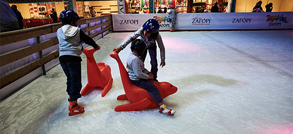 Μια τεράστια παγοπίστα, διαστάσεων 320 τ.μ., σας περιμένει για να κάνετε τα πρώτα σας βήματα στον πάγο. Γιατί το μόνο σίγουρο είναι ότι θα ζηλέψετε, όταν θα δείτε τους καταπληκτικούς αθλητές και προπονητές της Ελληνικής Ομοσπονδίας Παγοδρομιών σε επιδείξεις καλλιτεχνικού πατινάζ, αγώνες δεξιοτήτων και αγώνες χόκεϋ επί πάγου. Ένα μοναδικό θέαμα για μικρούς και μεγάλους που δεν πρέπει να χάσετε!