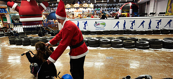 Με μόνο αξεσουάρ τη θετική σας ενέργεια, καθώς στο Santa Claus Kingdom θα βρείτε ό,τι θα βρίσκατε και σε ένα μικρό χιονοδρομικό κέντρο: Όλο τον εξοπλισμό που χρειάζεστε -πέδιλα και μπότες- στα μέτρα σας, ειδικούς για να σας μάθουν τα πρώτα βήματα πάνω στην πίστα και οι πιο πεπειραμένοι μπορείτε να οργανώσετε επί τόπου μίνι αγώνες κατάβασης με τους φίλους σας.