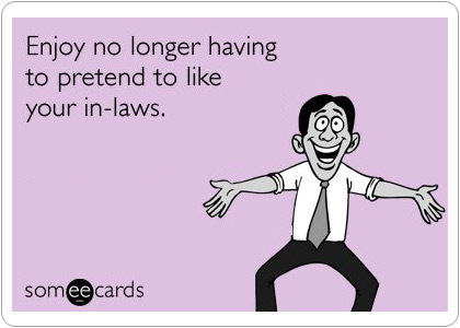 ...ότι δεν χρειάζεται ποτέ ξανά να προσποιηθείς ότι συμπαθείς τα πεθερικά σου!