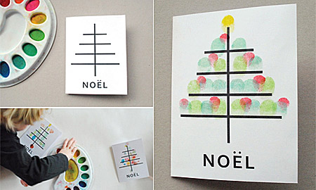 Σχεδιάστε σε μία λευκή κάρτα τον κορμό ενός χριστουγεννιάτικου δέντρου με μία κάθετη και πολλές οριζόντιες γραμμές και ζητήστε από τα παιδιά να του δώσουν χρώμα, βουτώντας τα δάχτυλά τους σε δακτυλομπογιές!