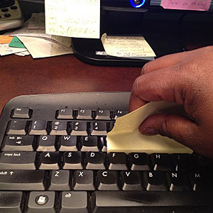 Καθαρίστε τις εσωτερικές εσοχές από το πληκτρολόγιό σας «περνώντας» τις με την αυτοκόλλητη πλευρά ενός Post it!