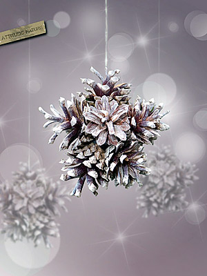 Κι αν θέλετε έστω λίγα στολίδια στα όμορφα δεντράκια σας, το πιο απλό που μπορείτε να κάνετε είναι να ψεκάσετε μερικά κουκουνάρια με ασημί σπρέι και να τα κρεμάσετε από κλωστή πετονιάς.