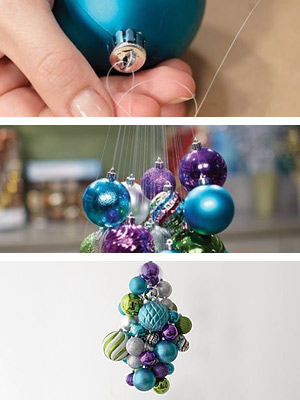 Αν δεν θέλετε να τις κρεμάσετε στο δέντρο, πιάστε τις αγαπημένες σας χριστουγεννιάτικες μπάλες με πετονιά, σε ένα μάτσο, σε διαφορετικό ύψος την κάθε μία, και κρεμάστε τις όλες μαζί από κάποιο ψηλό σημείο του σπιτιού, π.χ. πάνω από κάποιο παράθυρο.