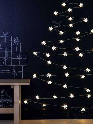 Μία σειρά από όμορφα χριστουγεννιάτικα λαμπάκια, τοποθετημένα σε σχέδιο δέντρου στον τοίχο, μπορεί να δείξει υπέροχη τη νύχτα. Ακόμα περισσότερο αν ο τοίχος είναι σκουρόχρωμος ή βαμμένος με μπογιά για μαυροπίνακα!