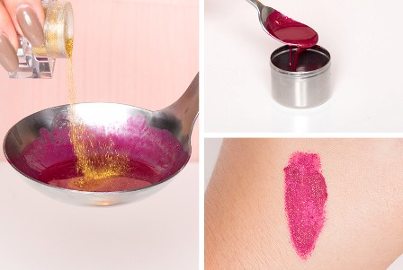 8. Αν χρησιμοποιήσετε γκλίτερ, ρίξτε το μέσα στην κουτάλα και ανακατέψτε (αφού όμως την έχετε κατεβάσει από την φωτιά).