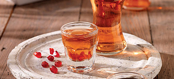 Βάζετε τους σπόρους του ροδιού σε μια κατσαρόλα μαζί με το τσίπουρο, τα ξύλα κανέλας, τα γαρίφαλα και τη ζάχαρη και τα ανακατεύετε καλά. Αφήνετε μέχρι να πάρουν την πρώτη βράση και τα κατεβάζετε από τη φωτιά.