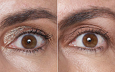 Αντίθετα, προτιμήστε ματ σκιές με μεταξένια υφή σε γήινες αποχρώσεις, όπως σαμπανιζέ ή ροδακινί. Προτιμήστε ανοιχτές γκρι ή καφέ αποχρώσεις αν τα μάτια σας είναι πρησμένα, για να τους δώσετε βάθος και φυσικότητα.