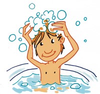 Πιο συγκεκριμένα συστήνεται καθημερινό μπάνιο προκειμένου να απομακρύνονται από το δέρμα οι βλαπτικοί παράγοντες που προσκολλώνται σε αυτό από τις καθημερινές δραστηριότητες (πχ σκόνη) και μπορεί να δρουν ερεθιστικά. Η παλαιότερη θεωρία ότι το καθημερινό μπάνιο ξεραίνει και αφυδατώνει το δέρμα τείνει να εγκαταλειφθεί. Το νερό θα πρέπει να είναι χλιαρό (κάτω από τη θερμοκρασία του σώματος) και η διάρκεια του μπάνιου να μην υπερβαίνει τα 5 λεπτά.