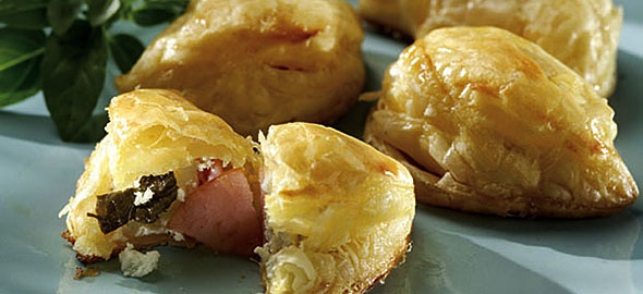 Τραγανά σφολιατάκια με προσούτο, μοτσαρέλα και βασιλικό