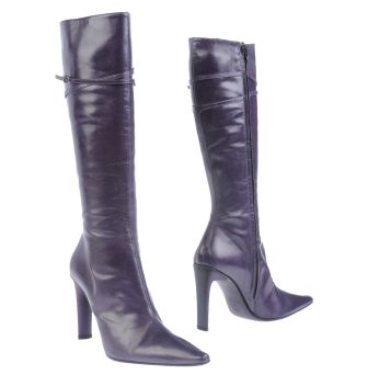 Εντυπωσιακές ψηλοτάκουνες μπότες σε μοβ μεταλλιζέ χρώμα με glam "αέρα" από τα 70s. Ταιριάξτε τις με ένα μαύρο απλό φόρεμα και αφήστε κατά μέρος τα πολλά αξεσουάρ.