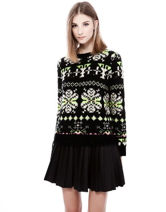 Πολύ χαριτωμένο πουλόβερ με snow prints, που συνδυάζεται εύκολα με φούστα ή τζιν παντελόνι για σούπερ casual look. Ένα ζευγάρι μποτίνια το ολοκληρώνουν.