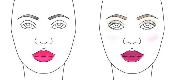 Ένας από τους πιο εύκολους τρόπους για να αναδείξετε το μακιγιάζ σας είναι να τονίσετε μόνο τα χείλη και τα φρύδια σας. Για τα χείλη χρησιμοποιήστε ένα κραγιόν σε έντονο κόκκινο ή βυσσινί χρώμα, το οποίο θα απλώσετε με την άκρη του δακτύλου σας. Στην βραδινή σας εμφάνιση, ωστόσο, πάνω από το ίδιο κραγιόν μπορείτε να «περάσετε» ένα κόκκινο ή βυσσινί κραγιόν σε διαφορετική, πιο σκούρα, απόχρωση –αυτή τη φορά χρησιμοποιώντας απευθείας το προϊόν. Οι δύο χρωματικές στρώσεις στα χείλη θα τους δώσουν βάθος και ένταση. Προσθέστε λίγο ρουζ σε nude απόχρωση, για να μην τραβά τα βλέμματα.