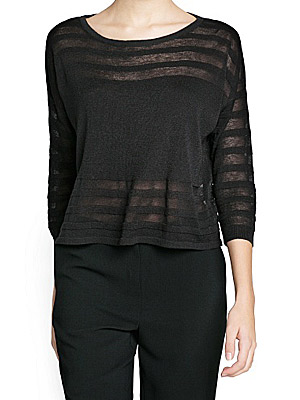 Χαριτωμένο και ευκολοφόρετο τοπ με διαφανείς ρίγες και ματ μπούστο, σε μαύρο χρώμα. Συνδυάστε το με μαύρο παντελόνι γραφείο ή και με τζιν και μαύρες μπαλαρίνες.