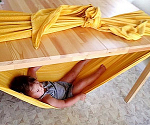 Με λίγο ύφασμα δεμένο σε ένα τραπέζι φτιάχνετε μία εξαιρετική αιώρα για το μωρό σας!