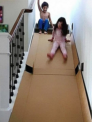 Ένα μεγάλο χάρτινο κουτί μπορεί, αν τοποθετηθεί προσεκτικά στη σκάλα...