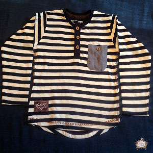 Στην όμορφη ανοιξιάτικη συλλογή του Royal Baby.gr ανακαλύψαμε το χαριτωμένο αυτό ριγέ μπλουζάκι για αγόρια, ηλικίας από 2 έως 7 ετών. Είναι από 100% βαμβάκι, με τζιν τσεπούλα και κουμπάκια στη λαιμόκοψη.