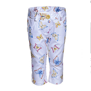 Παντελονάκι σε ίσια γραμμή, από ελαστική καπαρντίνα, με πολύχρωμες πεταλούδες για τις πιο όμορφες ανοιξιάτικες βόλτες! Διατίθεται για κορίτσια ηλικίας από 12 μηνών έως 6 ετών.
