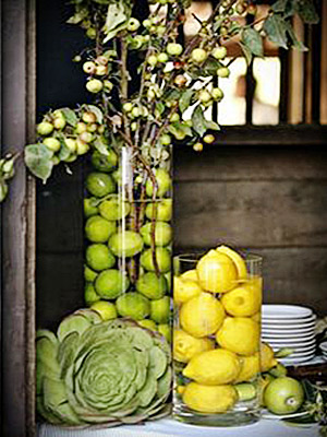...μπορούν να χρησιμοποιηθούν για τον σκοπό σας και να κοσμήσουν το χώρο της κουζίνας, αφού έχουν και αυτά έντονα χρώματα και μυρωδιές! Βάλτε τα φρέσκα μπαχαρικά και μυρωδικά σας σε βαζάκια και τα λεμόνια, τα πορτοκάλια, ή τα λάιμ σε μεγάλες γυάλες με νερό επάνω στο τραπέζι! Ο χώρος θα μεταμορφωθεί...