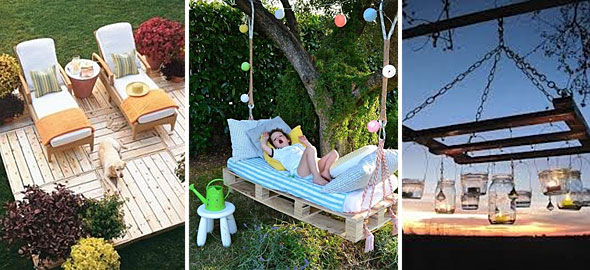 Ο κήπος και το μπαλκόνι είναι το μέρος του σπιτιού μας που σε ό,τι στύλ κι να είναι διακοσμημένο, η ταπεινή, οικολογική και φθηνή παλέτα θα ταιριάξει «γάντι» και θα δημιουργήσει εντυπώσεις ανεπιτήδευτου, ανάλαφρου και μοδάτου. Μπορεί να λειτουργήσει απλά ως κάθισμα, μερικά μαξιλάρια από πάνω, ως κούνια ή ως κρεμαστό φωτιστικό για ρεσώ.