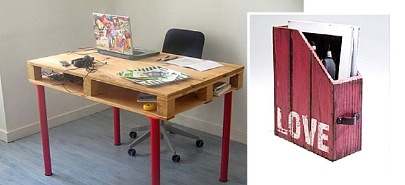 Τέσσερα μεταλλικά "πόδια" αρκούν για να μετατραπεί μία παλέτα σε γραφείο, ενώ αν... πιάνουν τα χέρια σας μπορείτε και να κατασκευάσετε από αυτήν ένα κουτί αρχειοθέτησης.